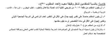 ان يكون مستوفيا للشروط الواردة بالقانون رقم 49 لسنة 1972 بشأن تنظيم الجامعات ولائحته التنفيذية وتعديلاتهما - لا يجــوز للمعين عــن طـريـق هــذا الإعــلان النقل أو الإعـــارة أو القيام بإجـــازة خـاصـة قبل مـرور خمس سنوات من شغل الوظيفة (يقدم إقرارا كتابياً بذلك) - ويكون تعيين أعضاء هيئة التدريس ومعاونيهم بالجامعات المصرية التابعة للمجلس الأعلى للجامعات عن طريق النقل أو التعيين والأولوية للنقل.